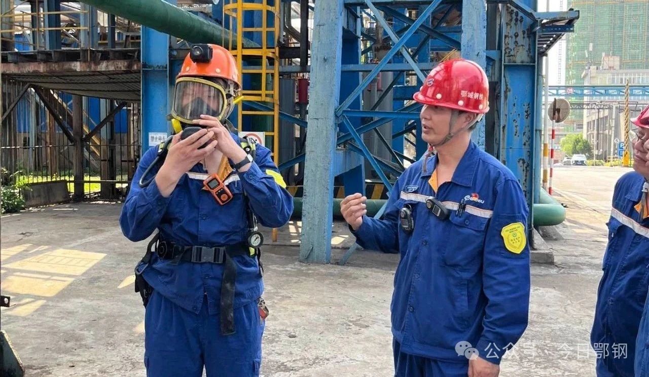 首站聚焦鋼軋廠紮材工序煤氣操作區,團隊結合實際案例,係統講解煤氣泄漏標準化流程,重點演示空氣呼吸器全流程。通過“一對一”實操考核,確保崗位人員“人人過關、技能達標”。