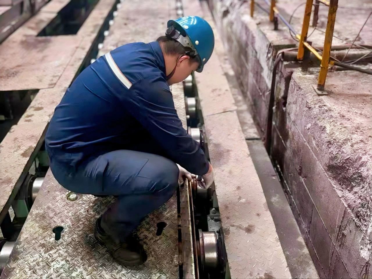 為解決問題,行車車間綜合點檢班對數十起跳槽事故追根溯源,並精心製作《行車一級點檢知識培訓教程》,記錄了鋼絲繩從細微磨損到滑輪的轉動異響判斷條件,滿滿“幹貨”,讓員工的點檢能力大幅提升。此外,利用現有材料自主研發了鋼絲繩防跳槽裝置,給鋼絲繩穿上了“安全鎧甲”,緊緊護住鋼絲繩。