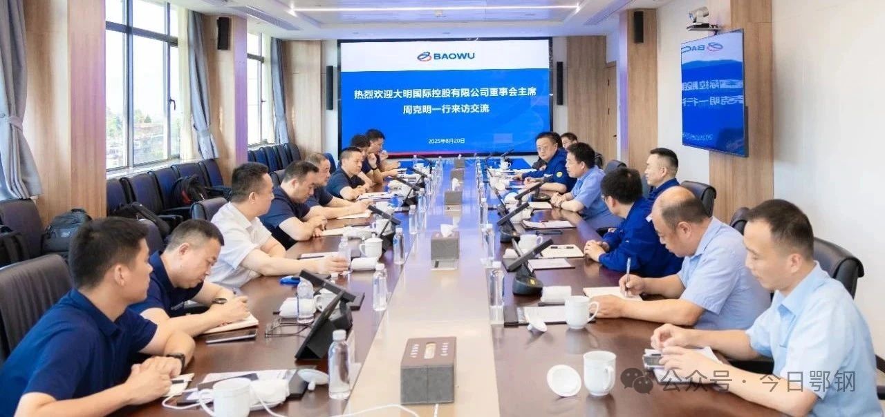 8月20日,大明國際控股有限公司董事會主席周克明、總裁梁宗仁一行來訪鄂鋼,與該公司黨委書記、董事長陸隆文,總裁、黨委副書記黃大軍座談交流。
