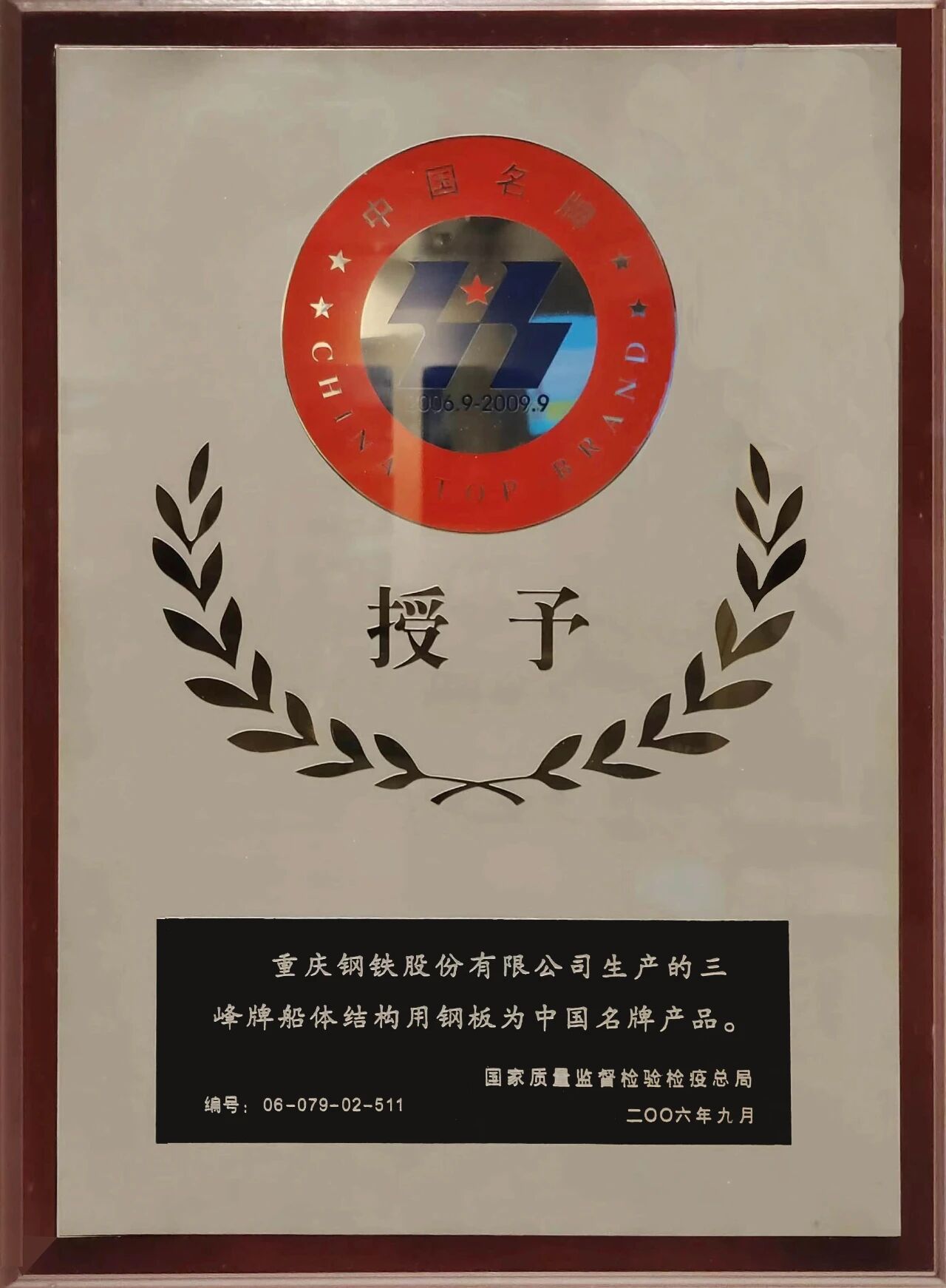 2006年9月,三峰牌船體結構用鋼板被授予中國名牌產品