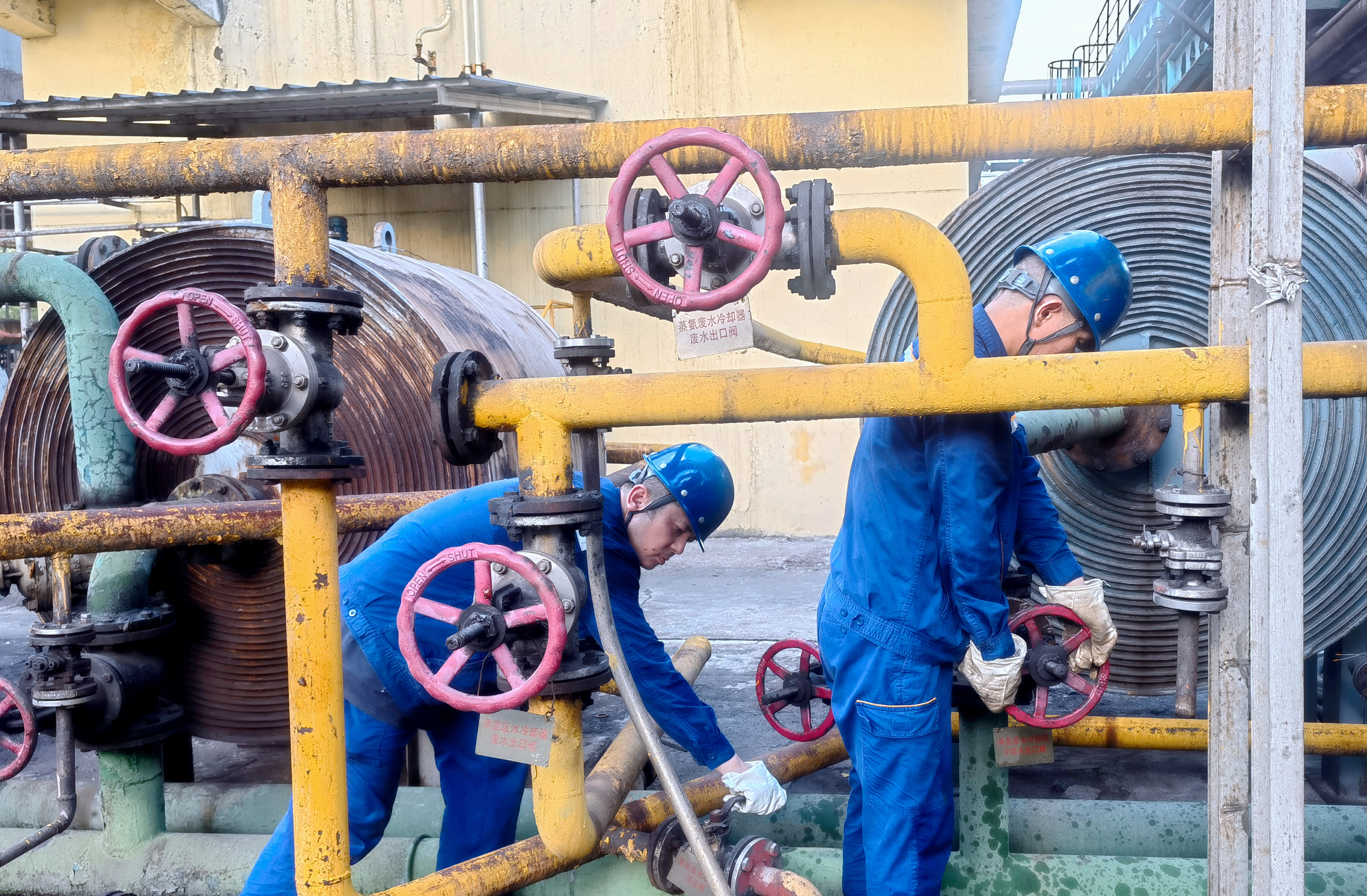 為從根本上解決這一生產難題,化產生產二班並未依賴外部支援,而是立足班組實際自主攻堅,圍繞“安全、高效、徹底”三大核心目標,製定了周密的中夜班專項作業方案。他們精準把握中夜班環境氣溫普遍比白班低5-8℃的天然優勢——這zhe一yi溫wen差cha不bu僅jin能neng減jian少shao冷leng卻que器qi處chu理li過guo程cheng中zhong熱re量liang反fan彈dan對dui後hou續xu操cao作zuo的de幹gan擾rao,更geng能neng降jiang低di作zuo業ye人ren員yuan在zai高gao溫wen管guan道dao周zhou邊bian作zuo業ye的de安an全quan風feng險xian,為wei優you化hua操cao作zuo創chuang造zao了le有you利li條tiao件jian。