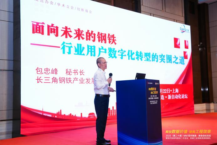 長三角鋼鐵產業發展協會包忠峰秘書長作《麵向未來的鋼鐵--行業用戶數字化轉型的突圍之道》專題報告。