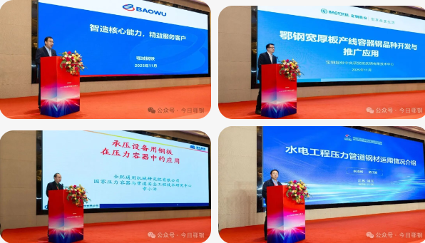 陸隆文指出,多年來,鄂鋼深耕壓力容器用鋼領域,依托中國寶武技術研發平台、綠色智慧高效製造體係、QCDVS用戶服務體係,已成長為華中區域高端板材與特種鋼材重要製造基地,鄂鋼的壓力容器用鋼廣泛應用於倉儲運輸、大型石化裝備等關鍵領域,憑借“國家高新技術企業”“國家綠色工廠”等榮譽加持,築牢了深耕壓力容器用鋼領域的信心和底氣。