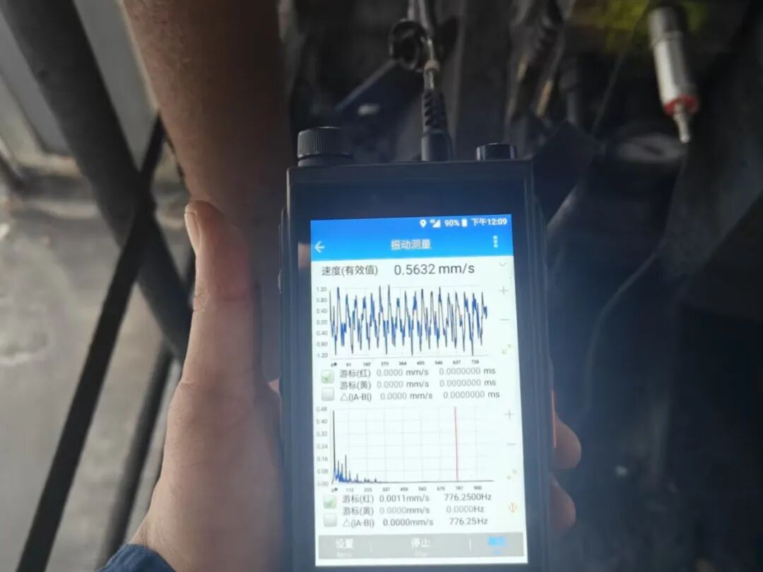 設備團隊經過現場查驗和大量的數據分析,選擇了一條更智能、也更需耐心的路徑——在線動平衡技術,通過計算和添加配重,實現“動態平衡”,從根源上抑製振動。“那段時間,大家幾乎是紮根在現場。”技術員楊麗回憶道。頻譜分析、數據采集、計算配重、焊接校正……每一個環節都要求極致的精細。“有時候,為了將振動值降低哪怕1毫米/秒,我們都要反複調校三四次。但沒人說放棄,大家憋著一股勁,就是要把這個難題拿下!”