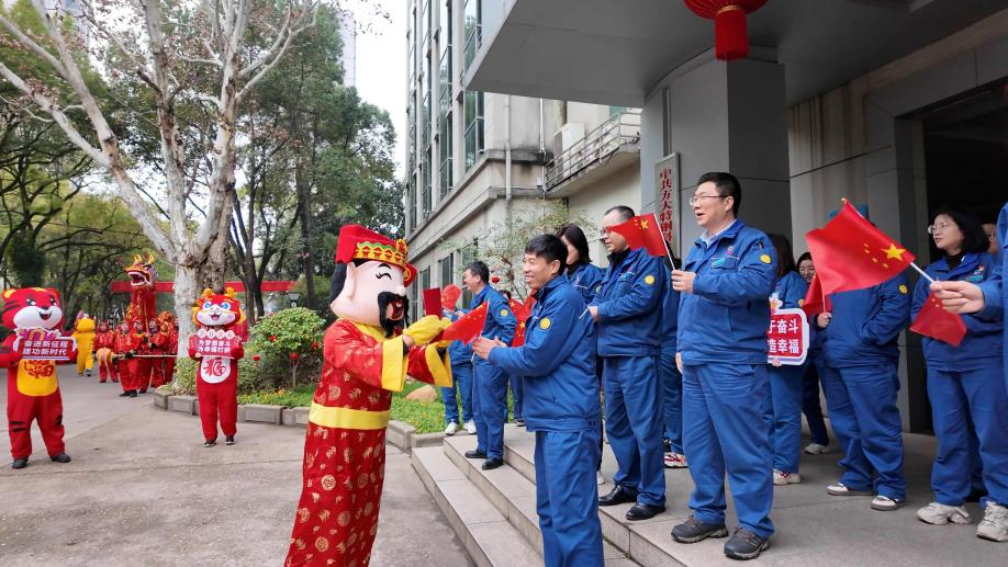 上午8時58分,伴隨著鏗鏘有力的鑼鼓聲與喜慶熱鬧的鞭炮聲,拜年隊伍正式啟程。一條金色祥龍身姿矯健,時而騰空躍起、時而盤旋擺尾,舞出“龍馬精神”“祥龍獻瑞”等吉祥造型;兩頭威風凜凜的雄獅步伐穩健,靈動的表演引得喝彩連連;“財神”人偶與可愛的福娃手持金元寶與“福”字,沿途向員工們揮手致意;精彩的舞蹈《你好我好新年好》更是跳出了方大人新年新氣象、凝心聚力、奮勇爭先的精神風貌,現場洋溢著歡樂祥和的節日氛圍。