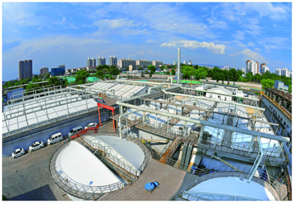 該項目相關負責人介紹,汙水池加蓋除味主要是采用新型反吊膜對汙水池進行封閉,再對池內揮發性氣體進行集中收集處理,通過堿洗、水洗、生物濾池淨化等,將酚氰廢水中原有的氨氣、硫liu化hua氫qing進jin行xing物wu理li化hua學xue吸xi附fu,將jiang其qi中zhong有you機ji物wu進jin行xing生sheng物wu淨jing化hua處chu理li,從cong而er達da到dao除chu味wei效xiao果guo。封feng閉bi所suo用yong的de膜mo材cai為wei氟fu碳tan纖xian維wei膜mo,這zhe種zhong膜mo材cai抗kang腐fu蝕shi性xing強qiang,抗kang拉la性xing強qiang,本ben身shen具ju有you非fei粘zhan著zhe性xing,不bu易yi粘zhan附fu灰hui塵chen,能neng有you效xiao降jiang低di後hou續xu維wei護hu成cheng本ben,同tong時shi還hai具ju有you氣qi密mi性xing好hao的de特te點dian,能neng隔ge絕jue內nei部bu氣qi體ti對dui鋼gang結jie構gou的de腐fu蝕shi,大da大da延yan長chang了le封feng閉bi工gong程cheng的de使shi用yong壽shou命ming。