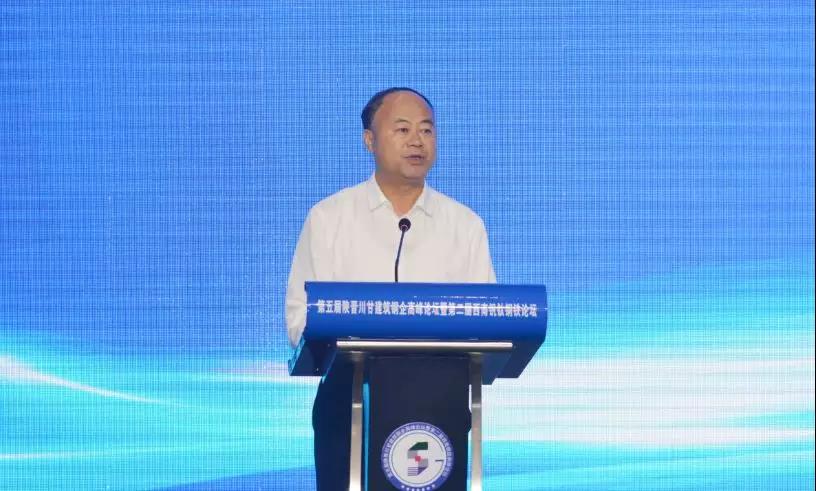 陝晉川甘建築鋼企高峰論壇理事長、第二屆西南釩鈦鋼鐵論壇理事長、陝鋼集團黨委書記、董事長楊海峰致辭.