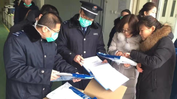天津市衛健委對捐贈防疫物資進行驗收
