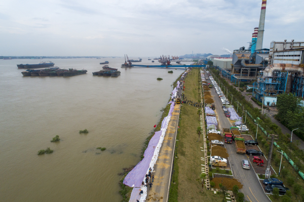 “築堤工作中沙袋怎麼擺放,你們一定要按照要求擺放好,確保防汛沙袋起到作用。”在該公司東區沿江岸線上,公司董事長顏建新、黨委書記徐向陽正和築堤人員認真、仔細交談,確保築堤工作要求層層傳達到位。