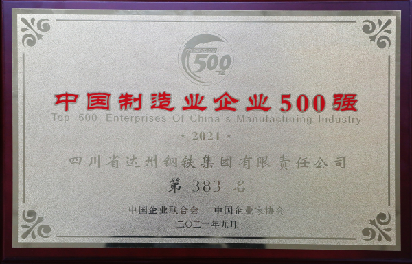 近日,中國企業聯合會、中國企業家協會發布了“2021中國製造業企業500強榜單”。榜單以全國製造業企業2020年度營業收入為依據進行排序,四川省達州鋼鐵集團有限責任公司以1947436萬元營收總額上榜2021年中國製造業企業500強名單,位列第383位。