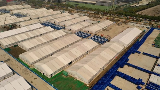 完成6座方艙醫院的鋼結構框架及艙棚建設