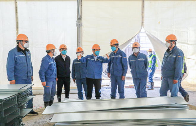 在工程驗收現場,檢驗人員在查驗中冶寶鋼承建的項目後,給出了“標準、規範、免檢”的最高評價。中冶寶鋼盡責擔當、服務大局,以嚴謹嚴細的工作作風,圓滿優質完成方艙醫院建設,交出一份高效率高質量的答卷。