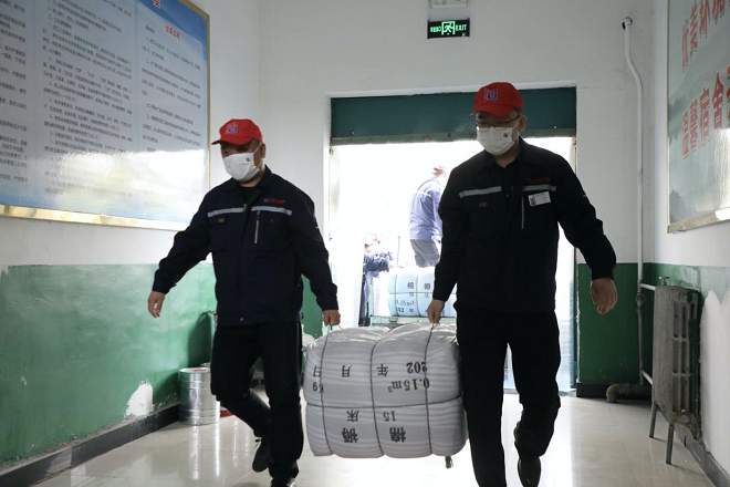 溫暖“疫”線(xian),公(gong)司(si)向(xiang)高(gao)速(su)卡(ka)口(kou)防(fang)疫(yi)一(yi)線(xian)工(gong)作(zuo)人(ren)員(yuan)捐(juan)贈(zeng)物(wu)資(zi),義(yi)無(wu)反(fan)顧(gu)地(di)伸(shen)出(chu)援(yuan)助(zhu)之(zhi)手(shou)捐(juan)贈(zeng)防(fang)疫(yi)物(wu)資(zi),以(yi)實(shi)際(ji)行(xing)動(dong)表(biao)達(da)對(dui)一(yi)線(xian)防(fang)疫(yi)人(ren)員(yuan)的(de)慰(wei)問(wen)和(he)感(gan)謝(xie),踐(jian)行(xing)社(she)會(hui)責(ze)任(ren)與(yu)擔(dan)當(dang),傳(chuan)遞(di)防(fang)疫(yi)正(zheng)能(neng)量(liang),助(zhu)力(li)疫(yi)情(qing)防(fang)控(kong)工(gong)作(zuo)。公(gong)司(si)向(xiang)武(wu)安(an)市(shi)發(fa)改(gai)局(ju)、生態環境分局捐贈物資,並將寫有“抗疫麵前不畏難 服務企業敢為先”的錦旗及礦泉水、牛奶、麵包等愛心物資送到各單位負責人手中,一箱箱滿溢著愛心的防疫物資給忙碌的工作人員增添暖意與溫情。贈品有價、愛心無價。小小的物資不僅彰顯著企業的拳拳之心,更是眾誌成城、全民攜手共築疫情防控堅實屏障的動人一幕,為這場戰“疫”增添了溫暖和感動,更加堅定了大家戰勝疫情的決心和信心。