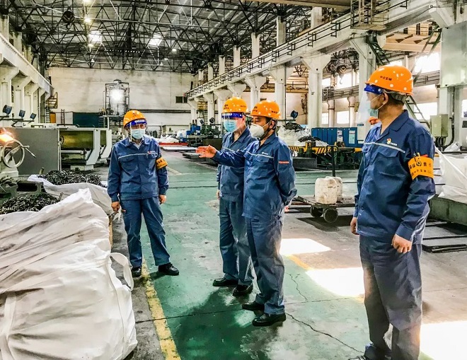 在zai中zhong冶ye寶bao鋼gang工gong業ye園yuan,曲qu登deng偉wei聽ting取qu了le園yuan區qu單dan位wei封feng閉bi管guan控kong以yi來lai疫yi情qing防fang控kong和he近jin期qi複fu工gong複fu產chan工gong作zuo彙hui報bao,先xian後hou來lai到dao重zhong機ji分fen公gong司si印yin尼ni青qing山shan鐵tie水shui運yun輸shu車che製zhi造zao車che間jian和he環huan工gong公gong司si格ge柵zha製zhi品pin生sheng產chan線xian,看kan望wang慰wei問wen日ri夜ye奮fen戰zhan在zai工gong作zuo崗gang位wei的de管guan理li人ren員yuan和he複fu工gong複fu產chan員yuan工gong。他ta強qiang調tiao,當dang前qian正zheng處chu於yu疫yi情qing防fang控kong和he複fu工gong複fu產chan的de關guan鍵jian階jie段duan,要yao同tong步bu抓zhua好hao疫yi情qing防fang控kong和he安an全quan生sheng產chan工gong作zuo,科ke學xue合he理li安an排pai生sheng產chan任ren務wu,優you化hua人ren員yuan組zu織zhi,堅jian持chi不bu懈xie、攻堅克難,努力為早日打贏疫情防控攻堅戰作出更大貢獻。