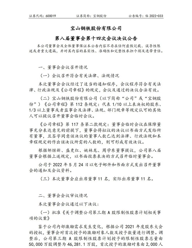 5月27日晚,寶鋼股份發布第八屆董事會第十四次會議決議公告,批準《關於武鋼有限公司吸收合並武鋼國貿公司的議案》《關於浙江寶旌吸收合並精業新材的議案》。