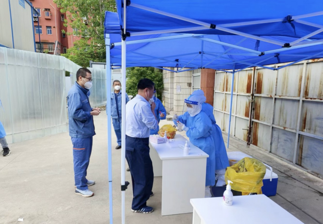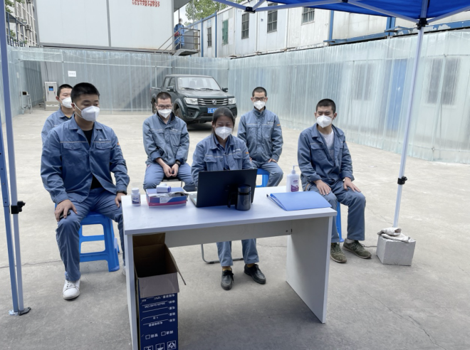 4月1日(ri),中(zhong)冶(ye)寶(bao)鋼(gang)嚴(yan)格(ge)落(luo)實(shi)上(shang)海(hai)市(shi)靜(jing)態(tai)管(guan)控(kong)要(yao)求(qiu),暫(zan)停(ting)項(xiang)目(mu)施(shi)工(gong)。自(zi)上(shang)海(hai)市(shi)發(fa)布(bu)複(fu)工(gong)複(fu)產(chan)第(di)一(yi)批(pi)白(bai)名(ming)單(dan)企(qi)業(ye)以(yi)來(lai),中(zhong)冶(ye)寶(bao)鋼(gang)迅(xun)速(su)集(ji)結(jie)骨(gu)幹(gan)力(li)量(liang),連(lian)夜(ye)啟(qi)動(dong)複(fu)工(gong)計(ji)劃(hua),第(di)一(yi)時(shi)間(jian)完(wan)成(cheng)靜(jing)默(mo)點(dian)搭(da)建(jian),並(bing)進(jin)行(xing)專(zhuan)業(ye)消(xiao)殺(sha),確(que)保(bao)人(ren)員(yuan)健(jian)康(kang)、安全。項目管理團隊積極響應防疫管控要求,實施全員靜默管理。同時,在靜默點積極開展項目複工籌備、專業知識培訓、安全教育、應急預案演練等工作,為複工複產創造積極條件。