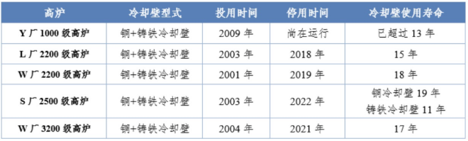 03 采用中冶南方爐缸長壽技術的高爐爐缸運行情況良好,典型實例如下: