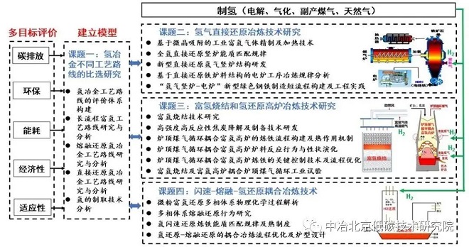 一、課題以“基礎理論—成套技術—解決方案—項目設計—工程示範”為總體思路,構建最佳綠色低碳氫冶金工藝路線,並形成以碳素流為主因素的多目標低碳工藝評價體係。