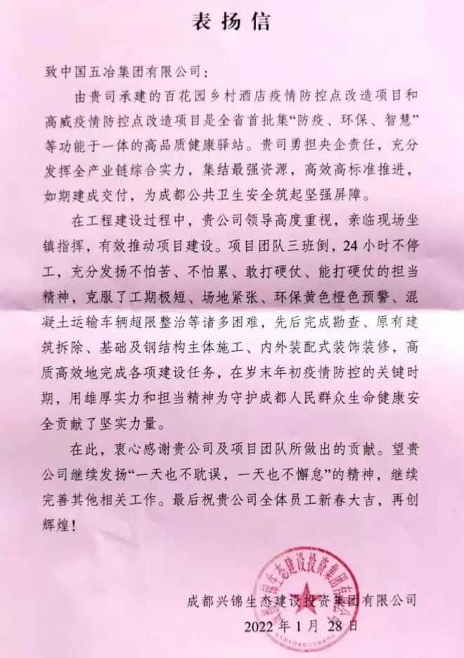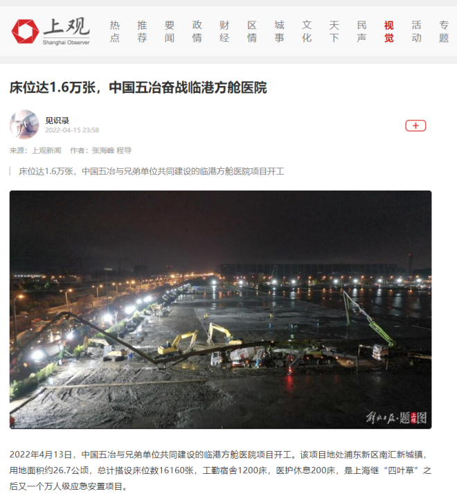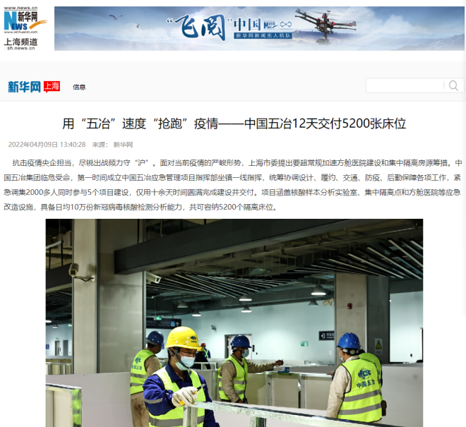 敢打必勝,使命必達。為以快製快,跑贏病毒,中國五冶集團組建44支黨員抗疫突擊隊,設立374個黨員抗疫先鋒崗,紮根一線不斷刷新“五冶速度”。過程中,五冶人與時間賽跑,以13個小時的“極限挑戰”交付了日均10萬份新冠病毒核酸檢測能力的樣本分析實驗室,鏖戰7個晝夜率先完成了可容納萬人的上海臨港方艙建設任務,曆時4個月呈現了總建築麵積17萬平(含五星級高端酒店4萬平、四星級精品酒店5萬平、高端公寓及配套設施8萬平)的國際一流健康驛站——chengdoutianfuguojijiankangfuwuzhongxin,pingjieyizhangzhangliangyanchengjidan,huodeshehuigefangguangfanzanyuhezhuliumeitigaopinguanzhu,jinyibuzhangxianlezhongguowuyejituangantiaodaliang、勇擔大任的工程建設主力軍風采!