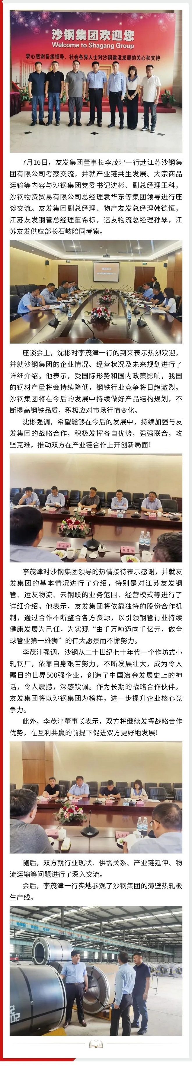 友發集團董事長李茂津一行赴江蘇沙鋼集團有限公司考察交流