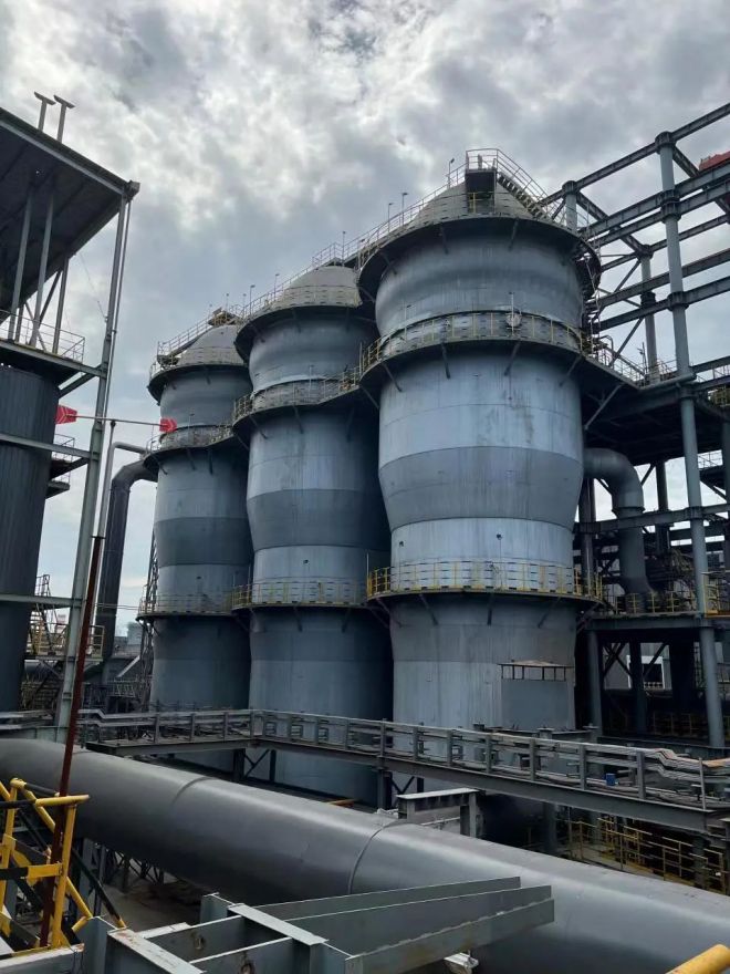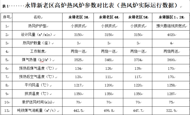 山東永鋒臨港有限公司臨港先進優特鋼產業基地(簡稱永鋒臨港鋼鐵)一期工程1號、2號高爐,各配套使用4座豫興公司優化改進的超低節能懸鏈線頂燃式熱風爐(見表1)。