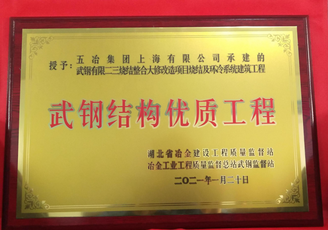“武鋼結構優質工程”獎牌