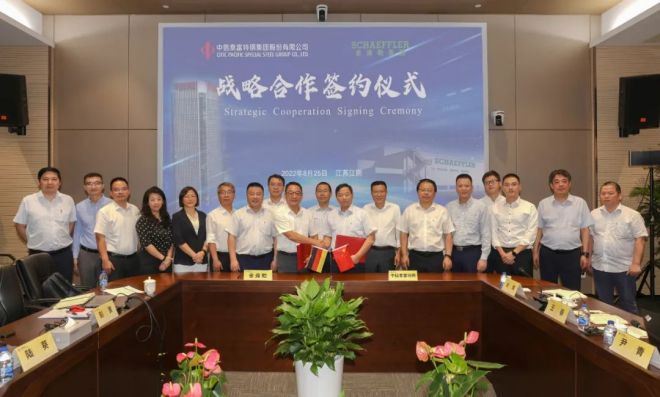 8月25日,中信泰富特鋼集團與舍弗勒集團簽訂戰略合作協議。中信泰富特鋼集團董事長、黨委書記錢剛,舍弗勒集團大中華區首席執行官張藝林博士,中信泰富特鋼集團黨委副書記、總裁李國忠,常務副總裁王文金等領導出席簽約儀式。舍弗勒集團首席運營官Andreas Schick線上參與本次儀式。