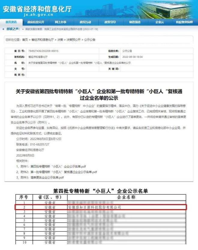 近期,第四批國家級專精特新“小巨人”企業名單已公示完畢,容知日新憑借技術創新、產品研發、拓展潛力等多方麵優勢,成功獲評國家級專精特新“小巨人”企業。