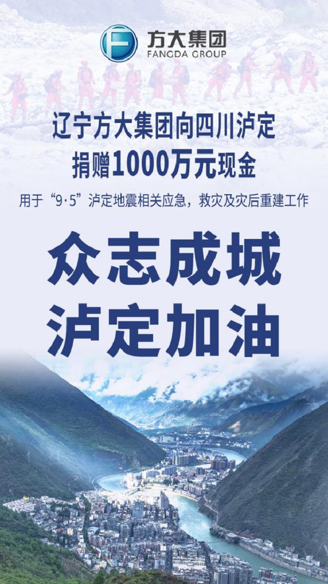 2022年9月5日12時52分,在四川甘孜州瀘定縣發生6.8級地震,造成重大人員傷亡,災情牽動著全國人民的心。9月9日,遼寧方大集團通過四川省慈善聯合總會,向四川瀘定捐贈1000萬元現金,用於“9·5”瀘定地震相關應急,救災及災後重建工作。目前,1000萬元現金已捐贈到位,全力助力政府和社會各界救災工作,幫助受災群眾紓困解難、共克時艱。