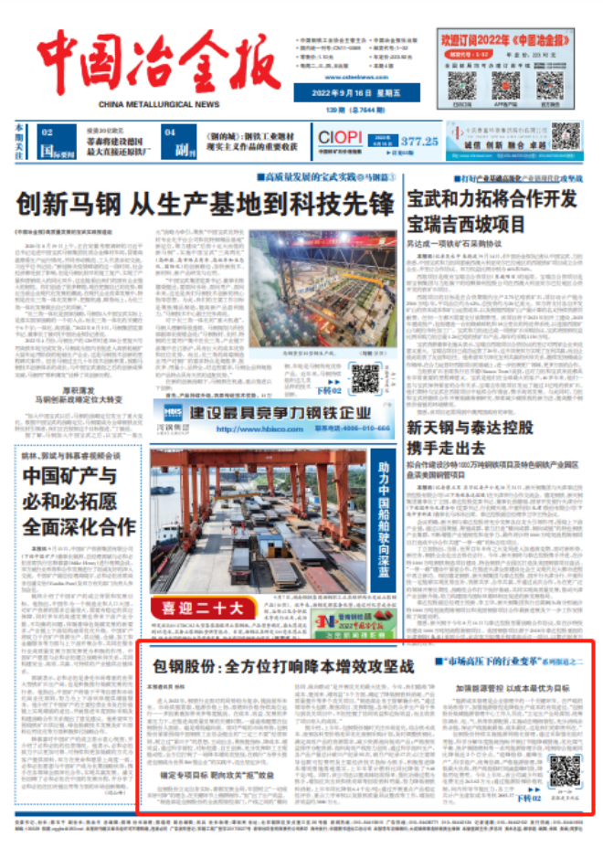 包鋼股份:全方位打響降本增效攻堅戰