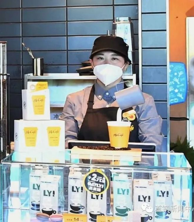餐廳門外和餐廳內分別設置有4輛“環保充電單車”,吸引不少人前來試騎。消費者踩動單車就能驅動發電,點亮麵前的巨型黃色“M”標(biao)誌(zhi)後(hou),單(dan)車(che)前(qian)方(fang)的(de)小(xiao)桌(zhuo)板(ban)還(hai)可(ke)以(yi)為(wei)手(shou)機(ji)進(jin)行(xing)無(wu)線(xian)充(chong)電(dian)。單(dan)車(che)的(de)塑(su)料(liao)部(bu)分(fen)是(shi)由(you)回(hui)收(shou)再(zai)利(li)用(yong)的(de)塑(su)料(liao)製(zhi)作(zuo)而(er)成(cheng),海(hai)洋(yang)塑(su)料(liao)回(hui)收(shou)椅(yi)也(ye)將(jiang)在(zai)首(shou)鋼(gang)園(yuan)餐(can)廳(ting)與(yu)顧(gu)客(ke)見(jian)麵(mian)。