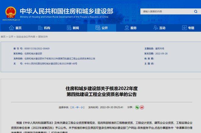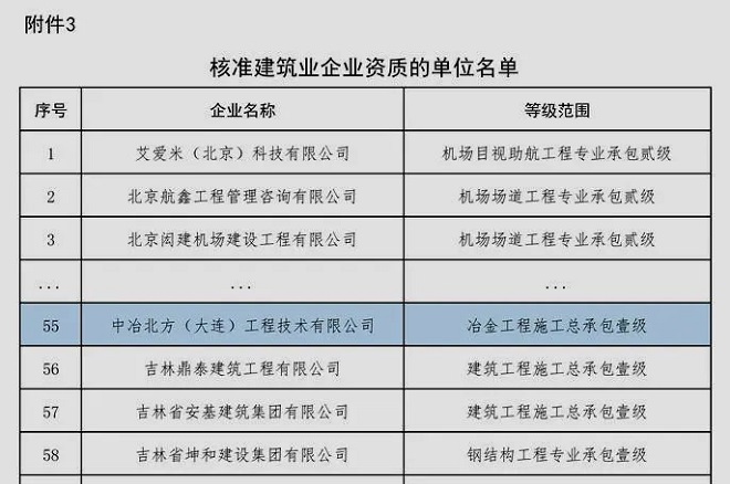 9月30日,國家住房和城鄉建設部發布《關於核準2022年度第四批建設工程企業資質名單的公告》,中冶北方(大連)工程技術有限公司順利通過審批,被核準授予“冶金工程施工總承包壹級資質”,成為該公司在工程施工資質發展上的又一個新的裏程碑!