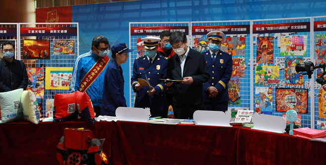 活動中,還對全市消防宣傳“五個一百”示範場所評比情況進行了公布,邀請3名消防宣傳公益使者進行了現場互動,並分別為消防宣傳公益使者頒發了聘書,為全市企業、社區、學校、農村消防宣傳示範場所代表頒發了獎牌。