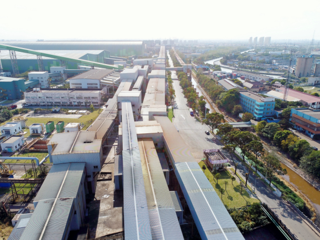 寶鋼股份寶山基地原料輸入係統超低排改造後航拍圖