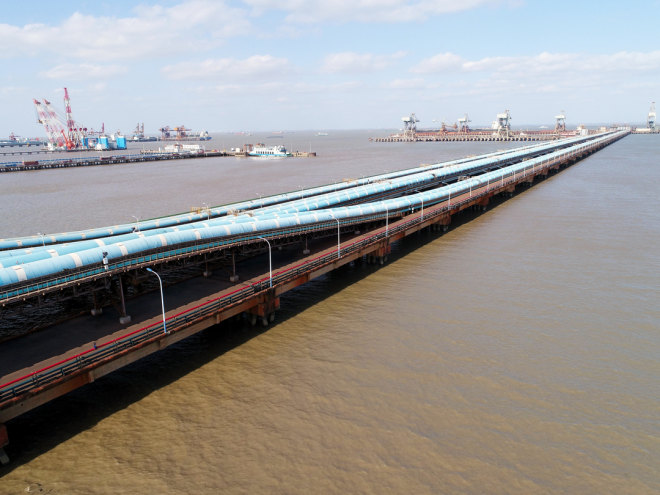 寶鋼股份寶山基地原料碼頭引橋區域完成皮帶機側封板封閉