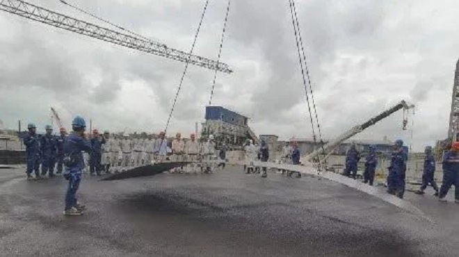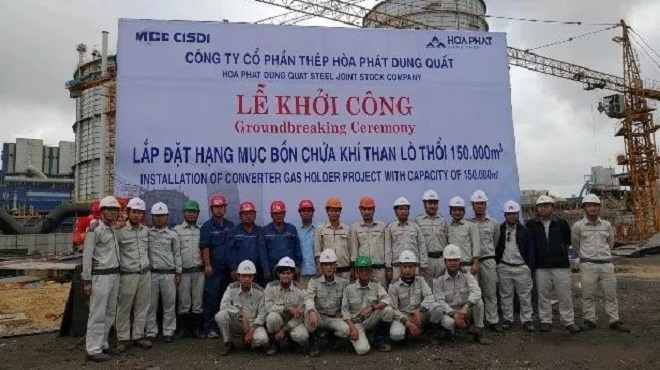 12月6日上午,由重慶賽迪熱工環保總承包建設的越南和發榕橘15萬立方米轉爐煤氣櫃工程順利開工。號令聲起,隨著煤氣板底板吊第一鉤下鉤,該項目施工正式按下“啟動鍵”。