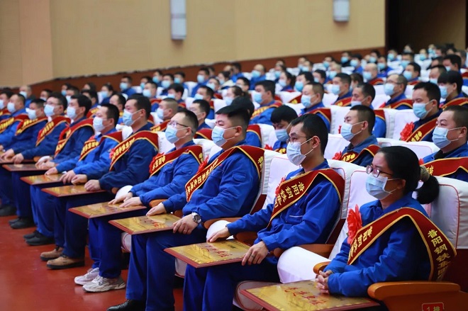 會議在莊嚴的國歌聲中拉開帷幕。會議對8個先進單位、53個先進集體、6名勞動模範、27名生產標兵、1名卓越管理者、4名優秀管理者進行了現場表彰,集團領導向獲獎者頒發了獎牌。