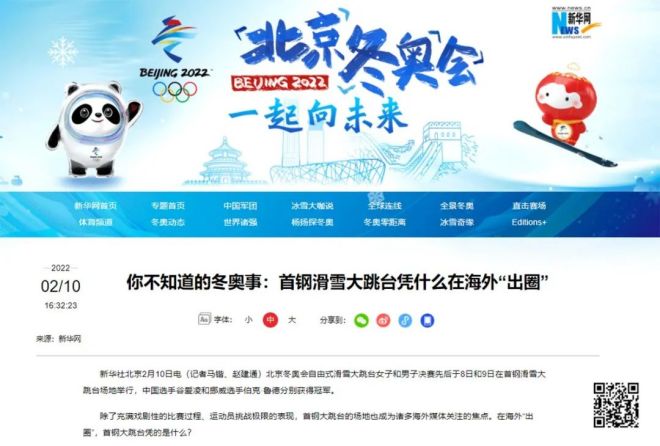 冬奧期間,海內外各大媒體對首鋼進行密集報道,盛讚首鋼之變,從2022年2月4日冬奧會開幕到2月16日首鋼滑雪大跳台結束比賽的13天裏,海內外各大媒體對大跳台和首鋼園的各類報道累計達93000餘條;從2021年10月26日冬奧會倒計時100天到冬殘奧會結束,累計各類媒體有關首鋼園的報道破紀錄地超過22萬條;首鋼園登榜“2022中國新時代100大建築”,首鋼滑雪大跳台和首鋼園成為“世界網紅地”。