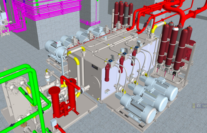 圖1 酸軋聯合機組軋機區域流體係統鳥瞰模型圖