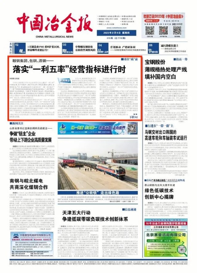 “一利五率”經營指標體係出台後,鋼鐵行業不僅是央企,部分地方國有企業也對此進行了積極部署,全力推動該指標體係加快落實落地。