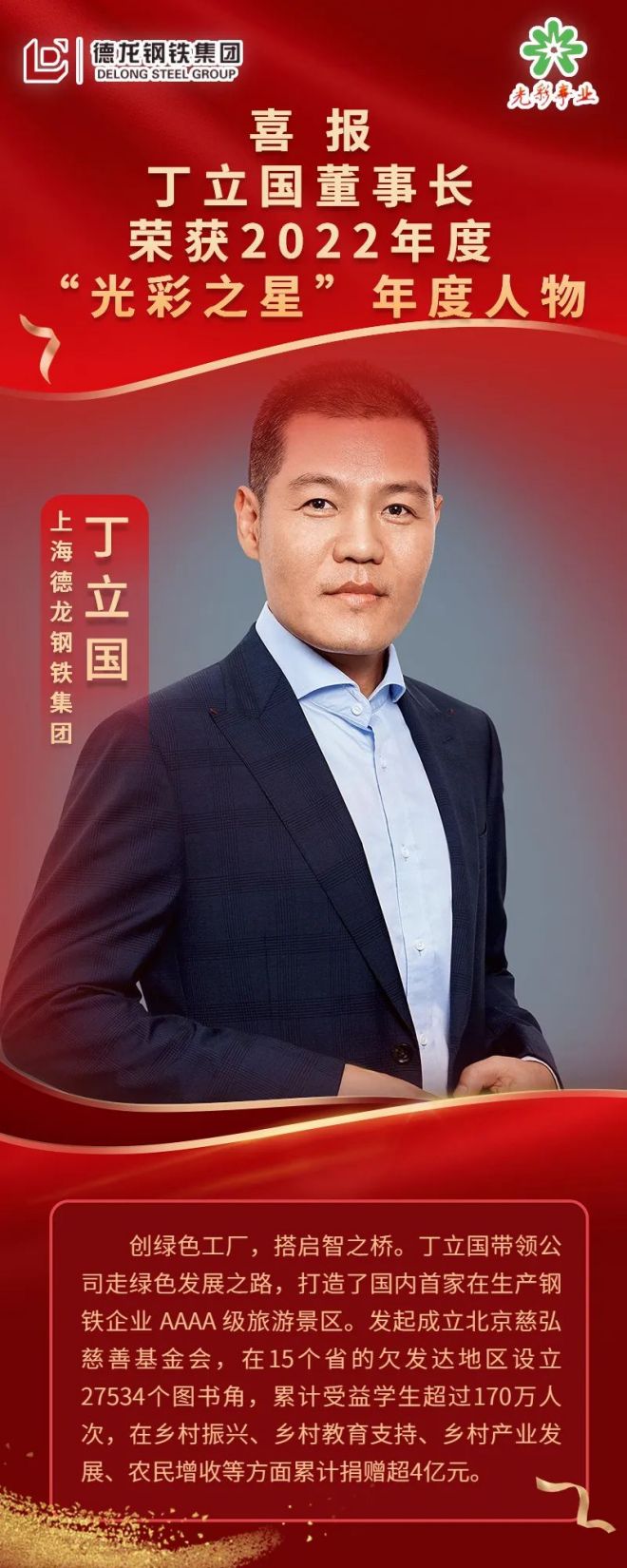 德龍鋼鐵集團董事長丁立國榮獲2022年度“光彩之星” 年度人物