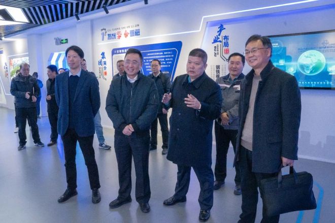 期間,王鐵成一行在智能管控中心聽取了項目電子沙盤講解,參觀了生產調度指揮中心、環保管控平台、智慧展廳以及“紅色熔爐”愛國主義教育基地,詳細了解了企業生產建設、項目規劃、發展曆程及黨建文化建設等內容。