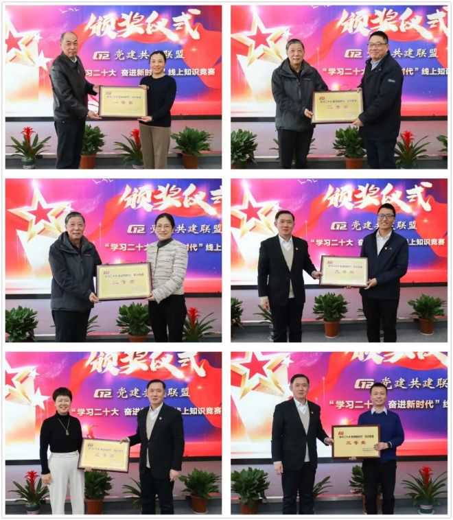 盧總在會議中對《關於開展G12黨建共建工作的調查問卷》進行彙總分析,並介紹了“學習二十大,奮進新時代”線上知識競賽組織情況,宣布了競賽結果。