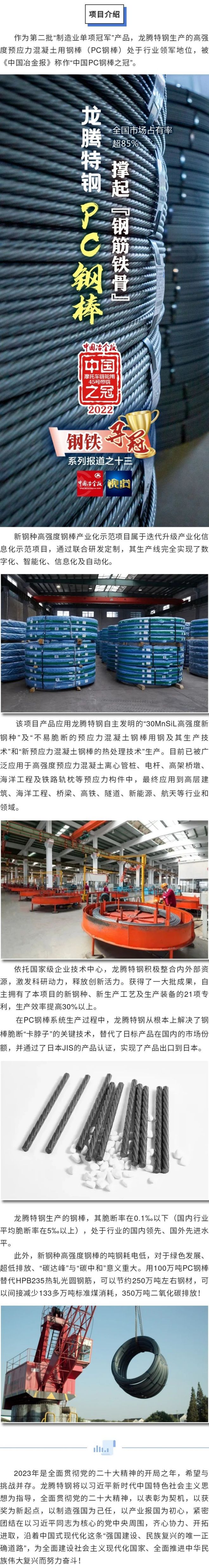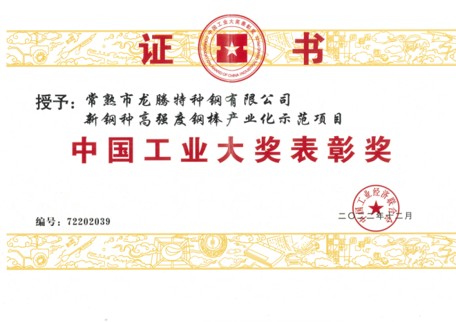 近日,第七屆中國工業大獎發布會在北京隆重舉行,龍騰特鋼以“新鋼種高強度鋼棒產業示範項目”榮獲中國工業大獎表彰獎。