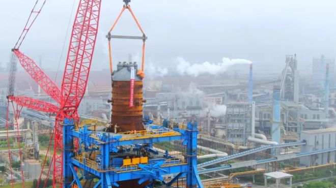 劍指零碳!氫基豎爐最後一段爐殼順利吊裝