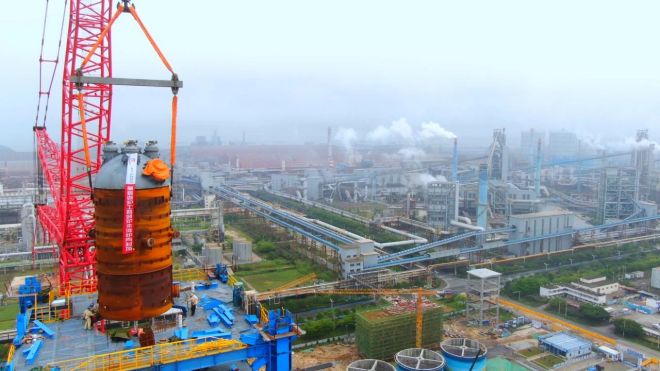 4月1日上午10點08分,國內首座百萬噸級氫基豎爐最後一段爐殼開始吊裝,經過900噸級履帶吊1個小時的吊運,該段爐殼抵達豎爐塔82.3米mi高gao度du位wei置zhi,成cheng功gong吊diao裝zhuang到dao位wei,這zhe標biao誌zhi著zhe寶bao鋼gang股gu份fen湛zhan江jiang鋼gang鐵tie氫qing基ji豎shu爐lu爐lu殼ke全quan部bu順shun利li吊diao裝zhuang完wan成cheng,氫qing基ji豎shu爐lu工gong程cheng建jian設she進jin入ru爐lu頂ding結jie構gou安an裝zhuang高gao峰feng期qi。