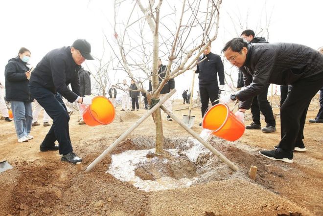春回大地萬物蘇,植樹添綠正當時。4月11日上午,鞍鋼集團黨委書記、董事長譚成旭,黨委常委、總會計師謝峰,黨委常委、副總經理徐世帥來到“雙鞍”共建綠色礦山複墾示範園植樹點,同幹部職工一起參加2023年鞍鋼集團總部春季義務植樹活動,種下片片綠色,共建美麗鞍鋼。