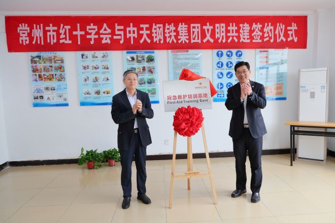 中天鋼鐵集團執行董事、副總裁、黨委副書記、工(gong)會(hui)主(zhu)席(xi)李(li)軍(jun)代(dai)表(biao)集(ji)團(tuan)與(yu)常(chang)州(zhou)市(shi)紅(hong)十(shi)字(zi)會(hui)簽(qian)訂(ding)戰(zhan)略(lve)合(he)作(zuo)協(xie)議(yi),並(bing)為(wei)中(zhong)天(tian)鋼(gang)鐵(tie)應(ying)急(ji)救(jiu)護(hu)培(pei)訓(xun)基(ji)地(di)揭(jie)牌(pai)。雙(shuang)方(fang)將(jiang)不(bu)斷(duan)深(shen)化(hua)合(he)作(zuo)內(nei)容(rong),共(gong)同(tong)推(tui)動(dong)紅(hong)十(shi)字(zi)中(zhong)天(tian)應(ying)急(ji)救(jiu)護(hu)基(ji)地(di)建(jian)設(she)向(xiang)更(geng)高(gao)標(biao)準(zhun)邁(mai)進(jin),著(zhe)眼(yan)打(da)造(zao)省(sheng)級(ji)救(jiu)護(hu)培(pei)訓(xun)基(ji)地(di),力(li)爭(zheng)創(chuang)建(jian)國(guo)家(jia)級(ji)培(pei)訓(xun)基(ji)地(di)。雙(shuang)方(fang)以(yi)“文明中天 ‘救’在身邊”行動為引領,大力傳播“人人學急救、急救為人人”理念,不斷發揮基地安全教育、素質拓展、示範引領的作用,持續為全體職工開展應急救護知識技能的培訓教育,構建應急救護培訓的示範性服務平台和安全教育體係。