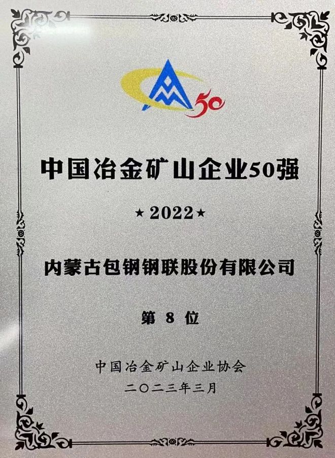 近日,中國冶金礦山企業協會發布了2022年中國冶金礦山企業50強名單,包鋼股份成功入圍,位列第8位。