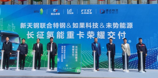 這批卡車是長城汽車旗下如果科技的“新長征1號”氫能重卡,其搭載的燃料電池由未勢能源研發製造。交付使用後,這些“0碳排”重型卡車,將成為新天鋼聯合特鋼的清潔運輸生力軍,助力企業打通環保績效創A“最後一公裏”。